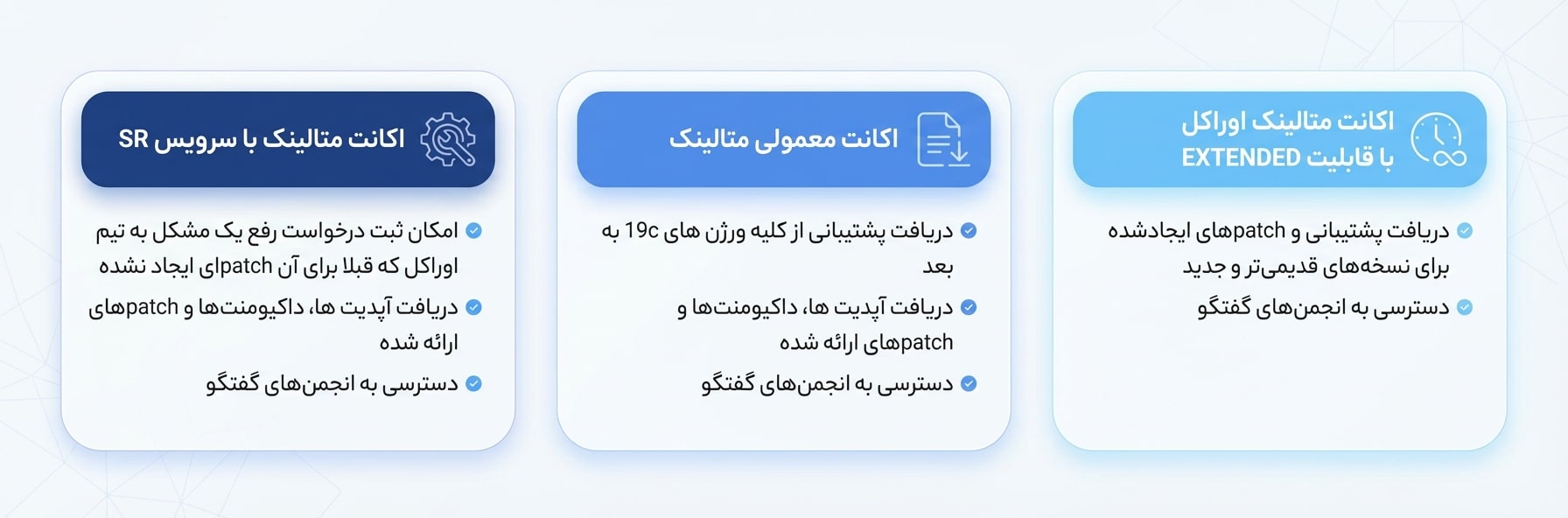 مقایسه پلنهای مختلف اکانت پشتیبانی اوراکل